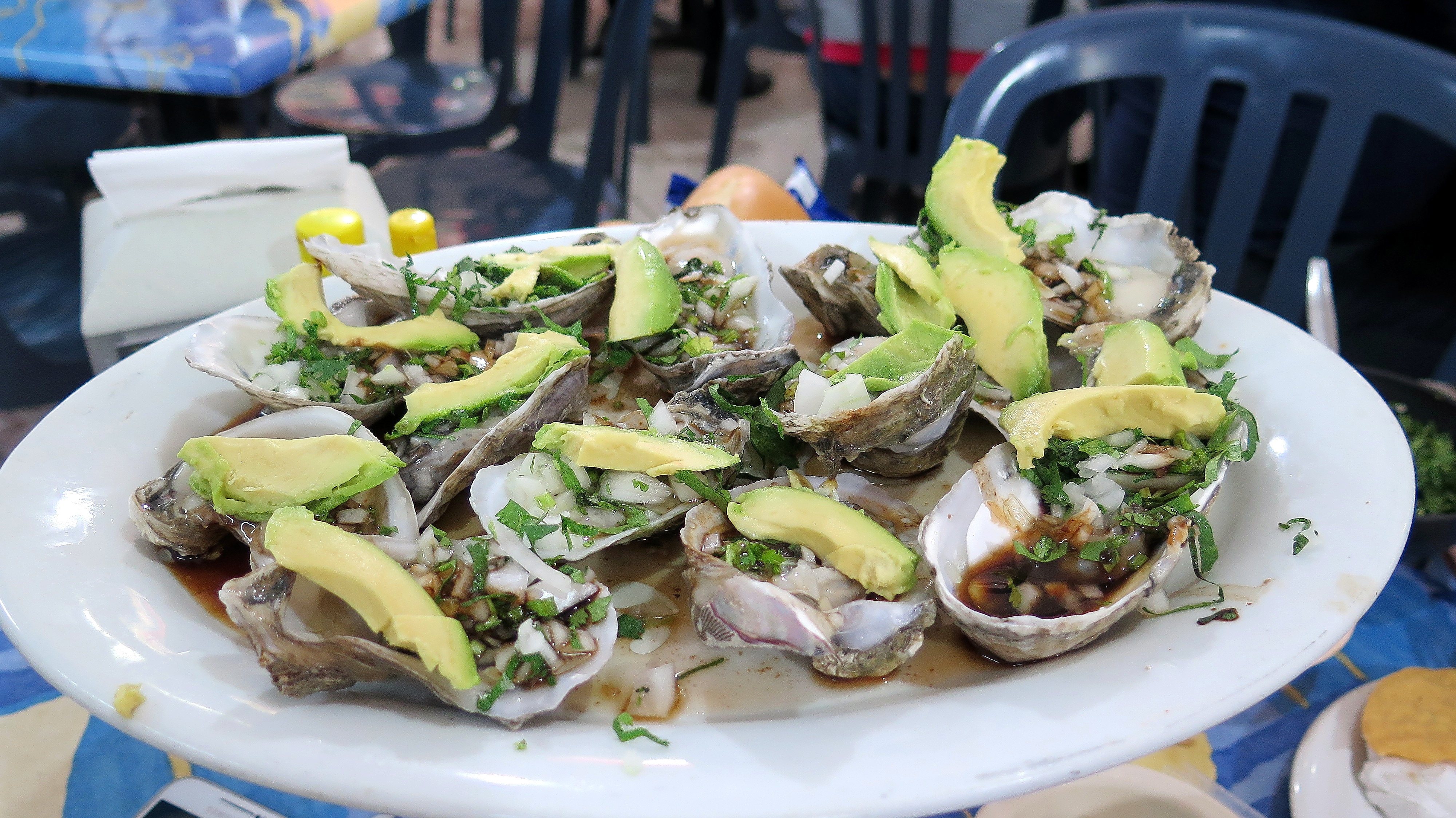 Mientras en un restaurante de pedigree una docena de ostiones rasurados superan los 200 o 300 doblones, aquí, sentadito en estas mesas de plástico, en sillitas de plástico y en un ambiente absolutamente informal, pagas hasta menos de 50, y su frescura los delata en boca.